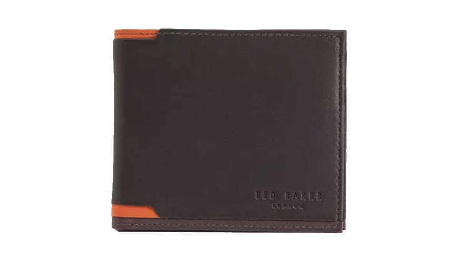 Ted Baker is a British luxury retail company. Ted Baker Corner Detail Bifold card holder wallet is the best accessory you can own to keep your valuable cards and money safe. The notable detail is a contrast layered corner having an orange colour which certainly brings compliments. Another striking detailing is the Ted Baker blind embossed inside and out. It has bi-fold design possessing a smooth leather exterior (100% Bovine Leather) and its lining is made of 100% Polyester. You can store 8 cards in its 8 card slots. It measures 10 cm x 22 cm (height x length) and comes in a branded box.